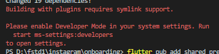 install은 정상적으로 되지만 sharedpreference를 사용시에는 빨간화면으로 정상적으로 앱실행이 되지 않았습니다. 해결 방법은 단순한대 나온대로 power shell terminal에 start ms-settings:developers 치면