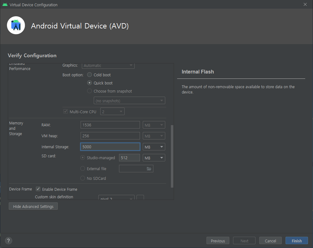 용량을 추가로 늘려줍니다. 제경우는 5gb 까지 주면 플러터 앱을 실습하는데 큰 문제가 없었습니다.